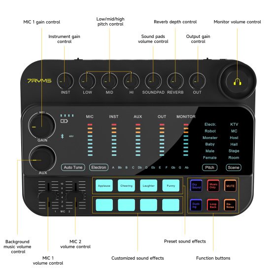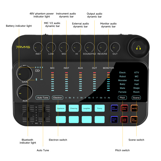 One of the standout features of the 7RYMS 7Caster SE2 audio interface is its built-in sound effects and voice modulation capabilities, enabling creators to add creativity and uniqueness to their content. Whether you want to enhance your voice for podcasts or engage your audience during live streams, this live streaming sound card provides all the tools you need.