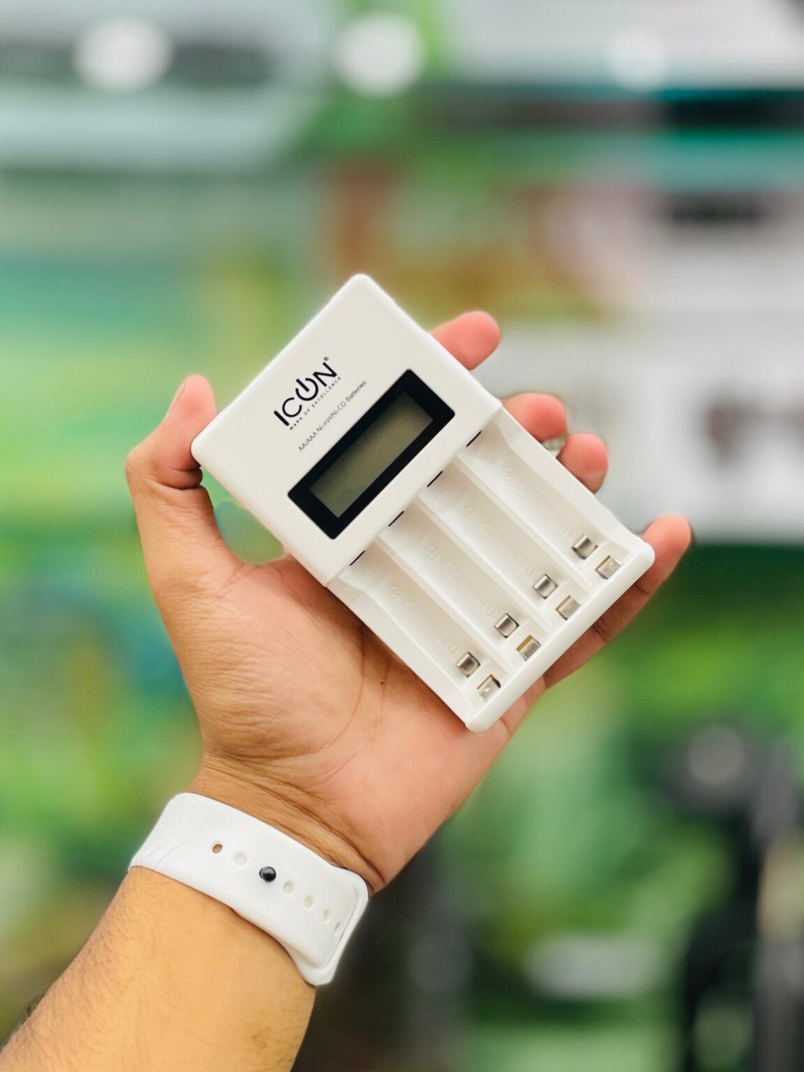 ICON Quick LCD battery charger for AA & AAA rechargeable cells — safe, fast, and perfect for cameras, electronics, and everyday devices.
