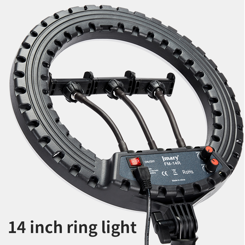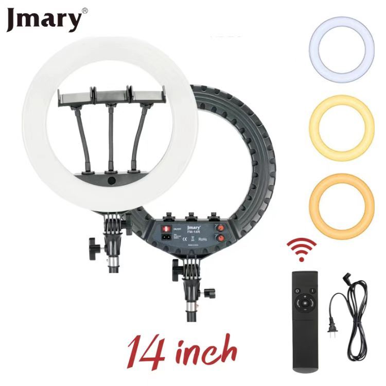 Brand: JmaryThe Jmary FM-14R Ring Light is a 14-inch professional LED ring light designed for photographers, videographers, and content creators. Featuring adjustable brightness and color temperature with an included remote, this photography LED ring light provides soft, shadow-free illumination, making it perfect for YouTube videos, live streaming, makeup tutorials, TikTok content, and studio setups.